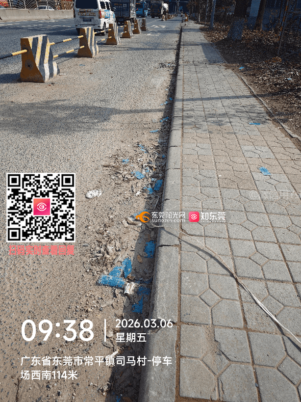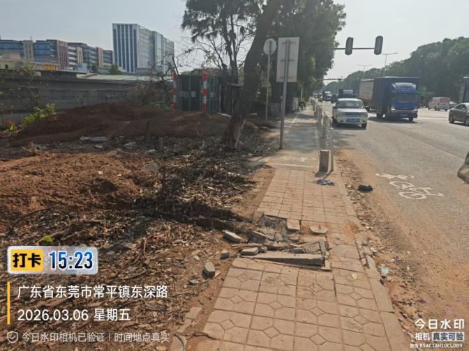 常平镇司马村东深路被渣土车压烂路沿人行道,往路边非法倒排渣土,简直是无法无天,东深路边本来就垃圾多,这下好了,白色垃圾和泥尘满天飞,让居住在东深路边的市民苦不堪言