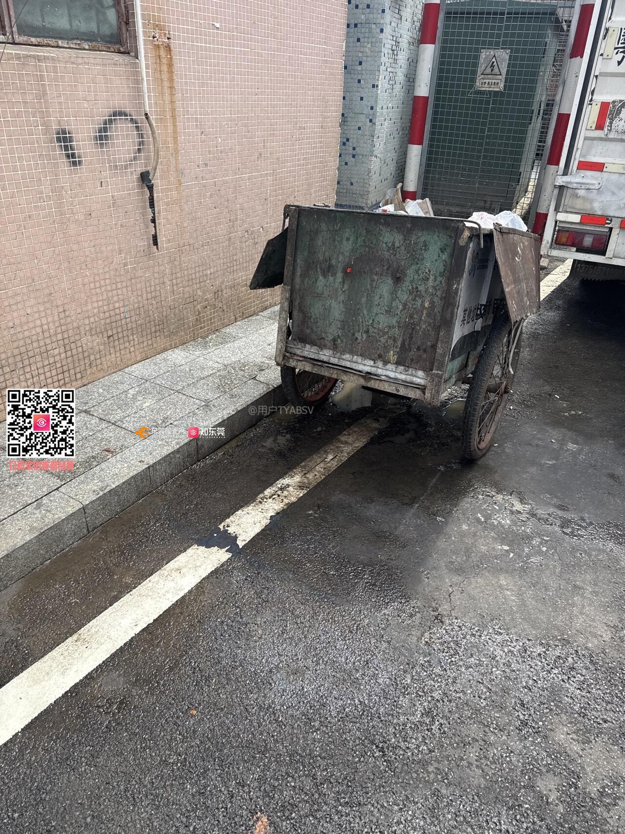 万江卢慈涡工业区一路8号门口,第三次因为同一个事情问政,清理垃圾车的污水流到厂门口,也不清洗干净,污水臭味飘进车间!!!